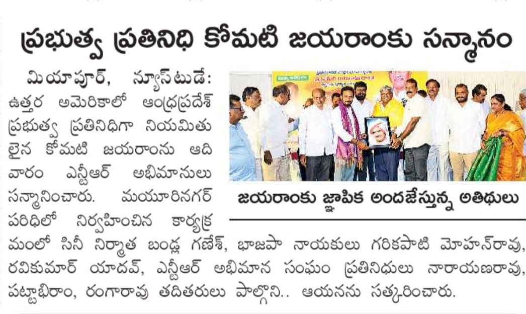 Jayaram Komati is a respected community leader who has consistently worked towards strengthening Telugu cultural values while addressing real-world social challenges. Through his association with TANA, one of the most prominent Telugu organizations in North America, he plays a key role in encouraging unity, cultural preservation, and humanitarian initiatives.